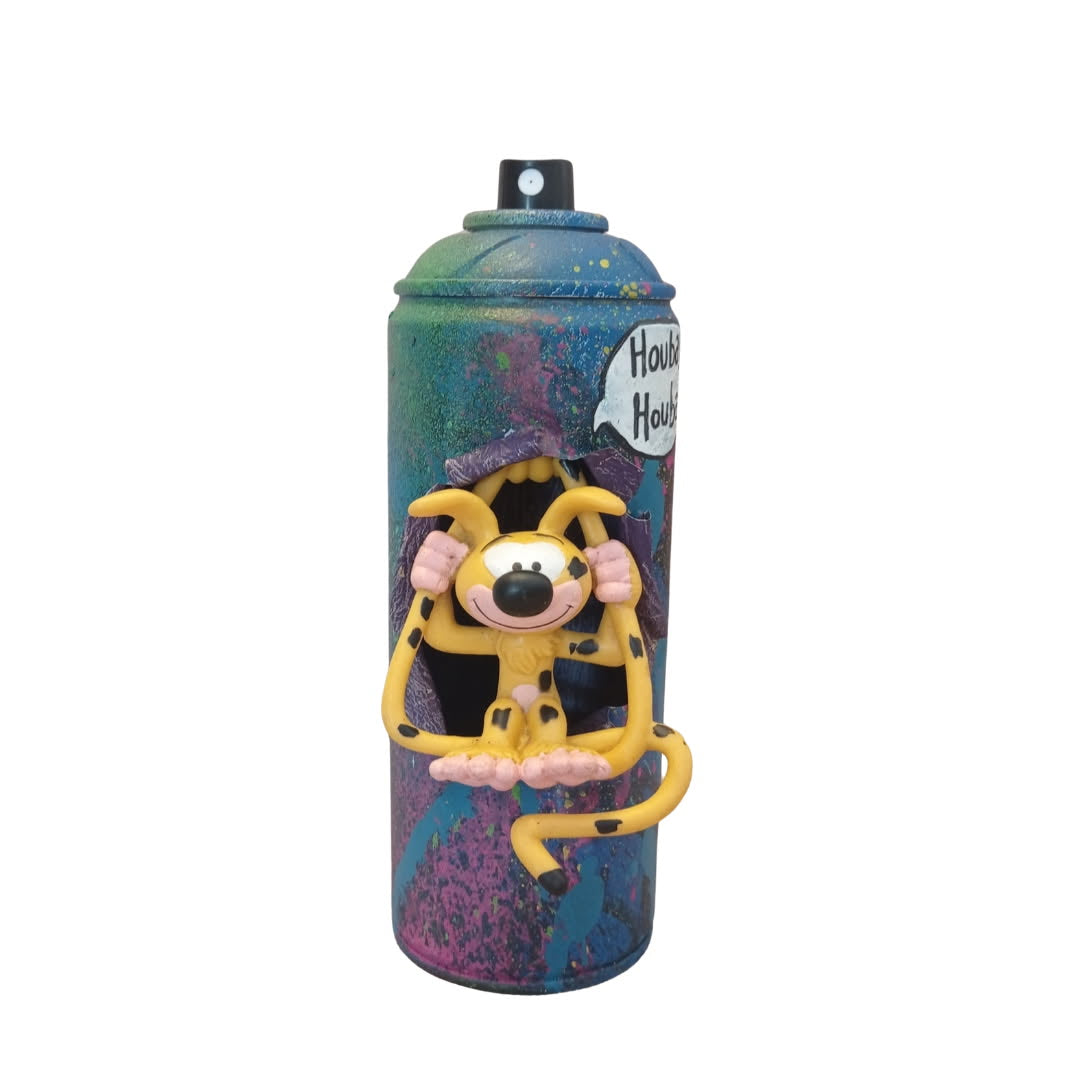 Faites avec amour et humour 💖, cette création artisanale est élaborée à partir de matériaux de récupération. Elle associe une bombe, une figurine, de la peinture extérieure et des collages papier.
