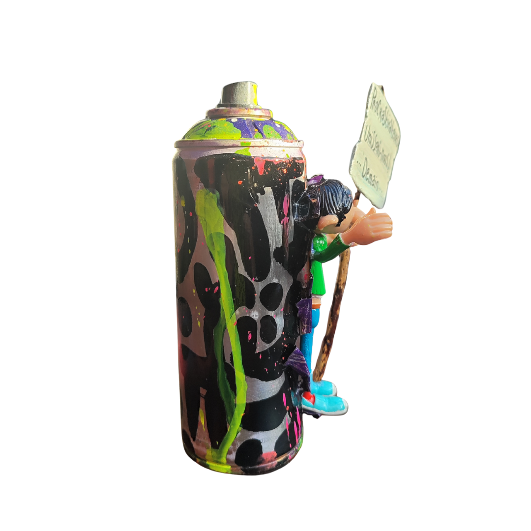 - Matériaux : bombe, figurines, peinture extérieure