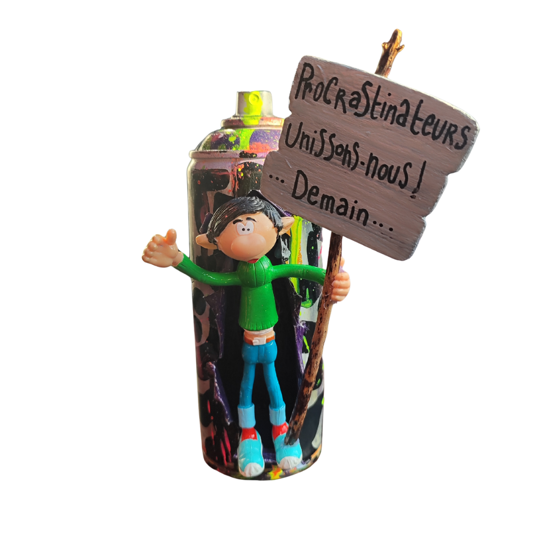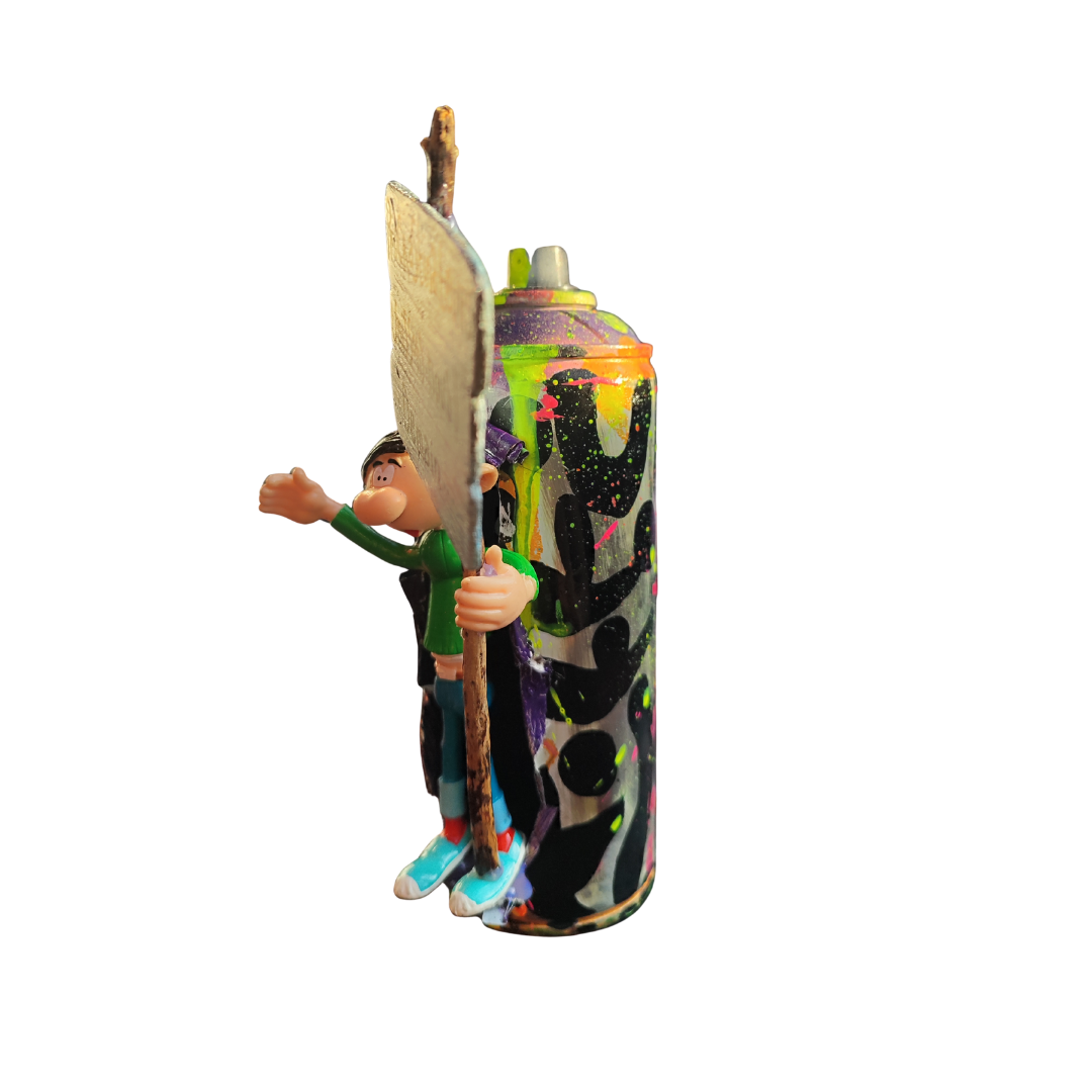 Faites avec amour et humour 💖, cette création artisanale est élaborée à partir de matériaux de récupération. Gaston manif 2 est décorée style "Doodle Art" à la peinture acrylique.