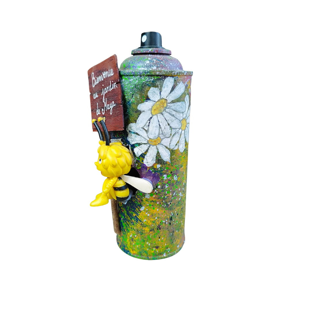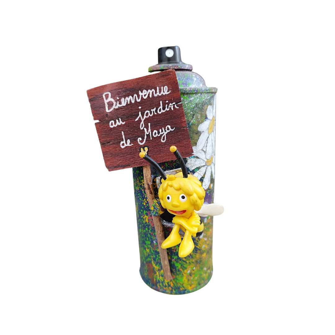 Faites avec amour et humour 💖, cette création artisanale est élaborée à partir de matériaux de récupération. Elle associe une bombe, une figurine, de la peinture extérieure et des collages papier.