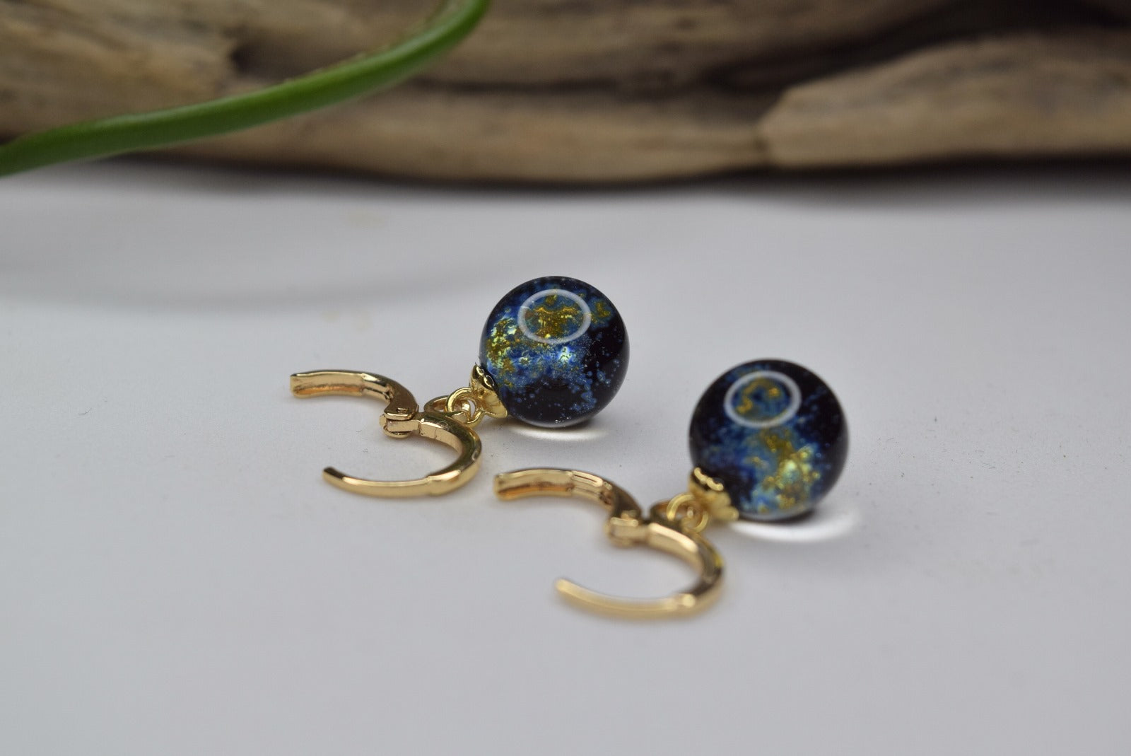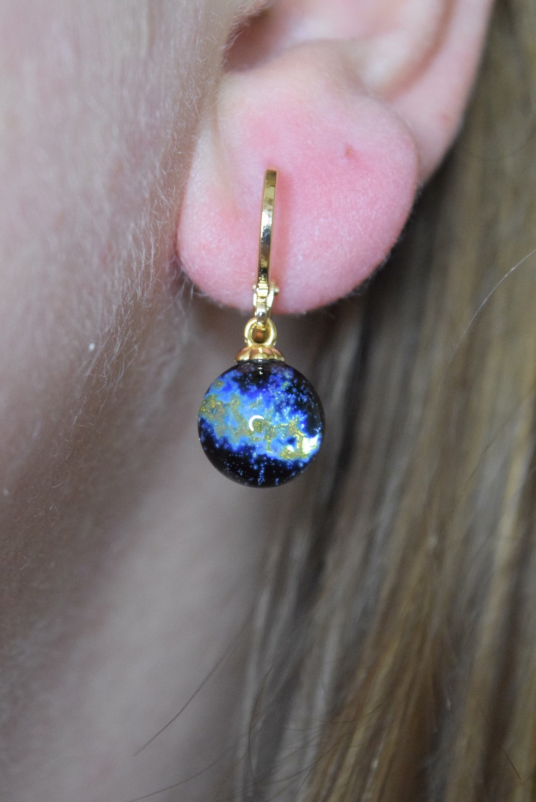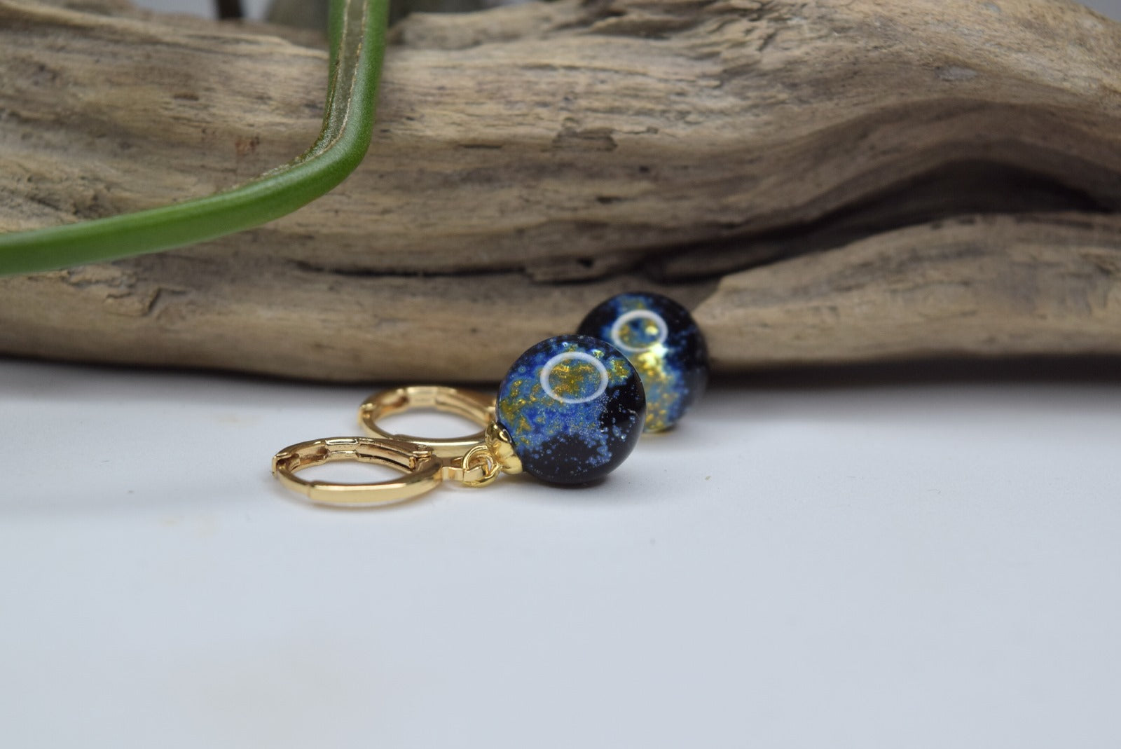 Ces créoles sont réalisées en verre borosilicate, avec une base noire et poudre d’argent 999 incrustée.