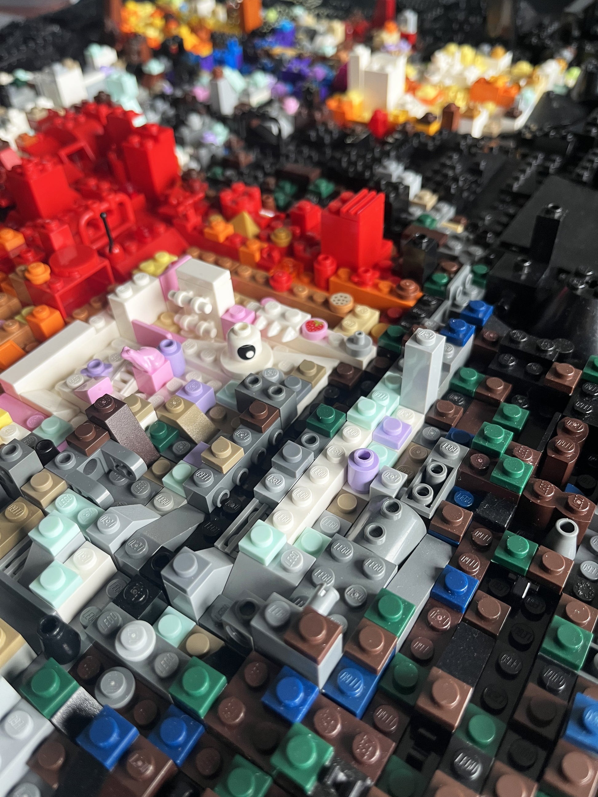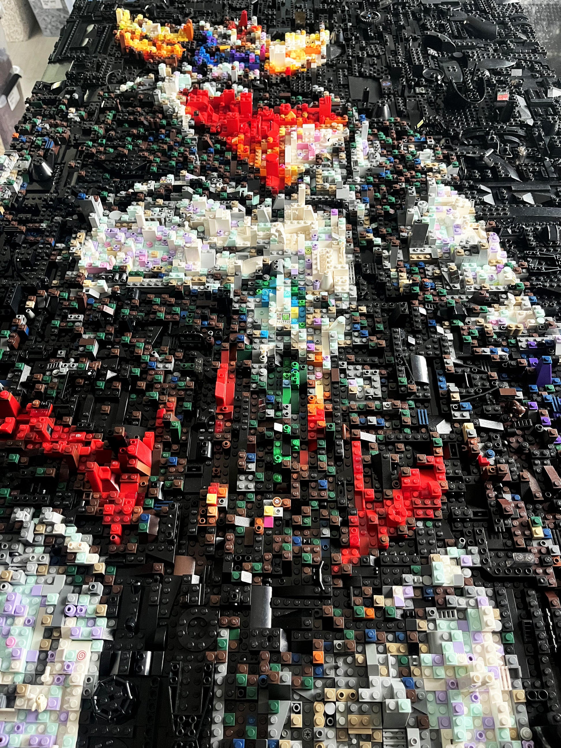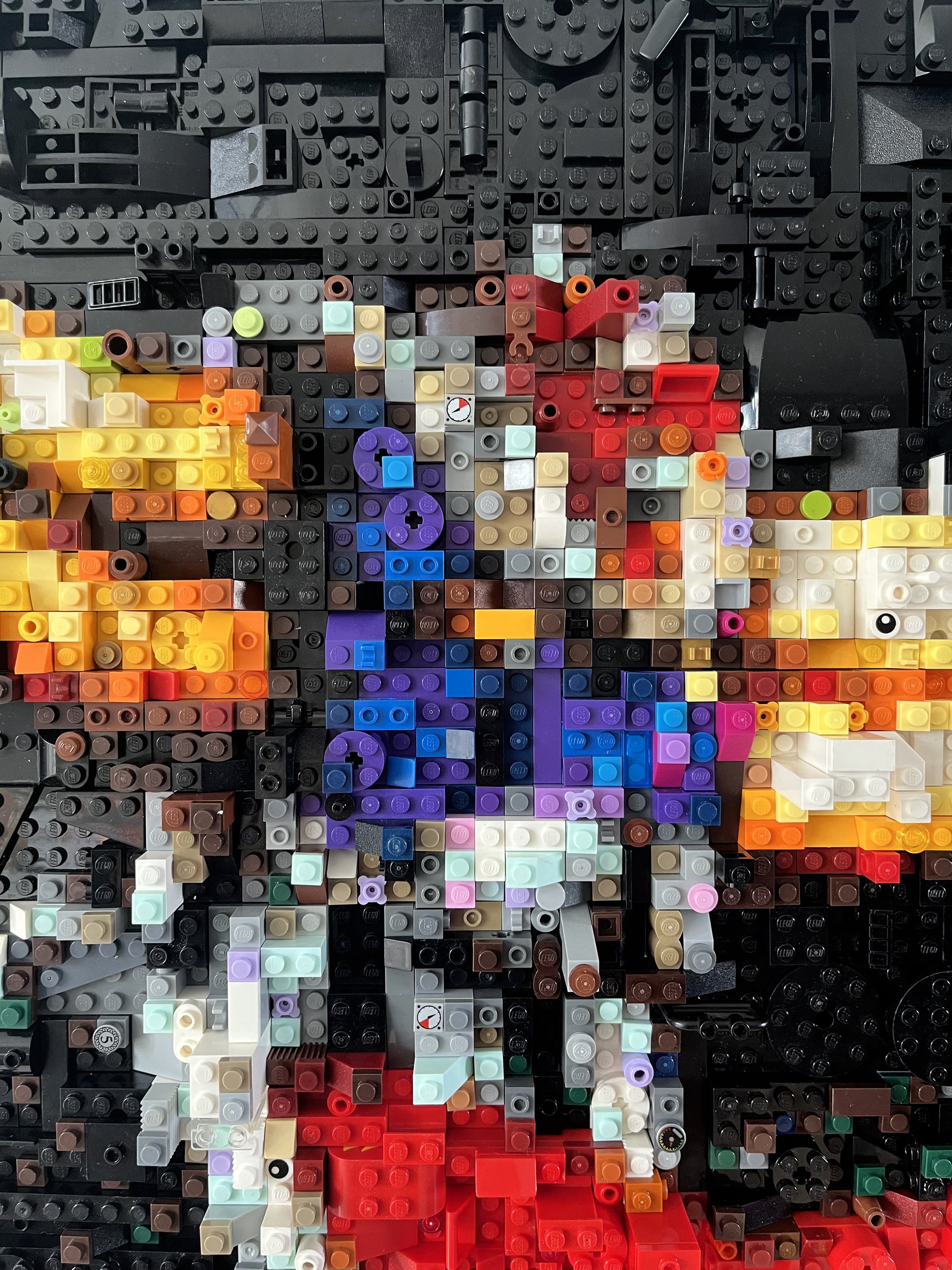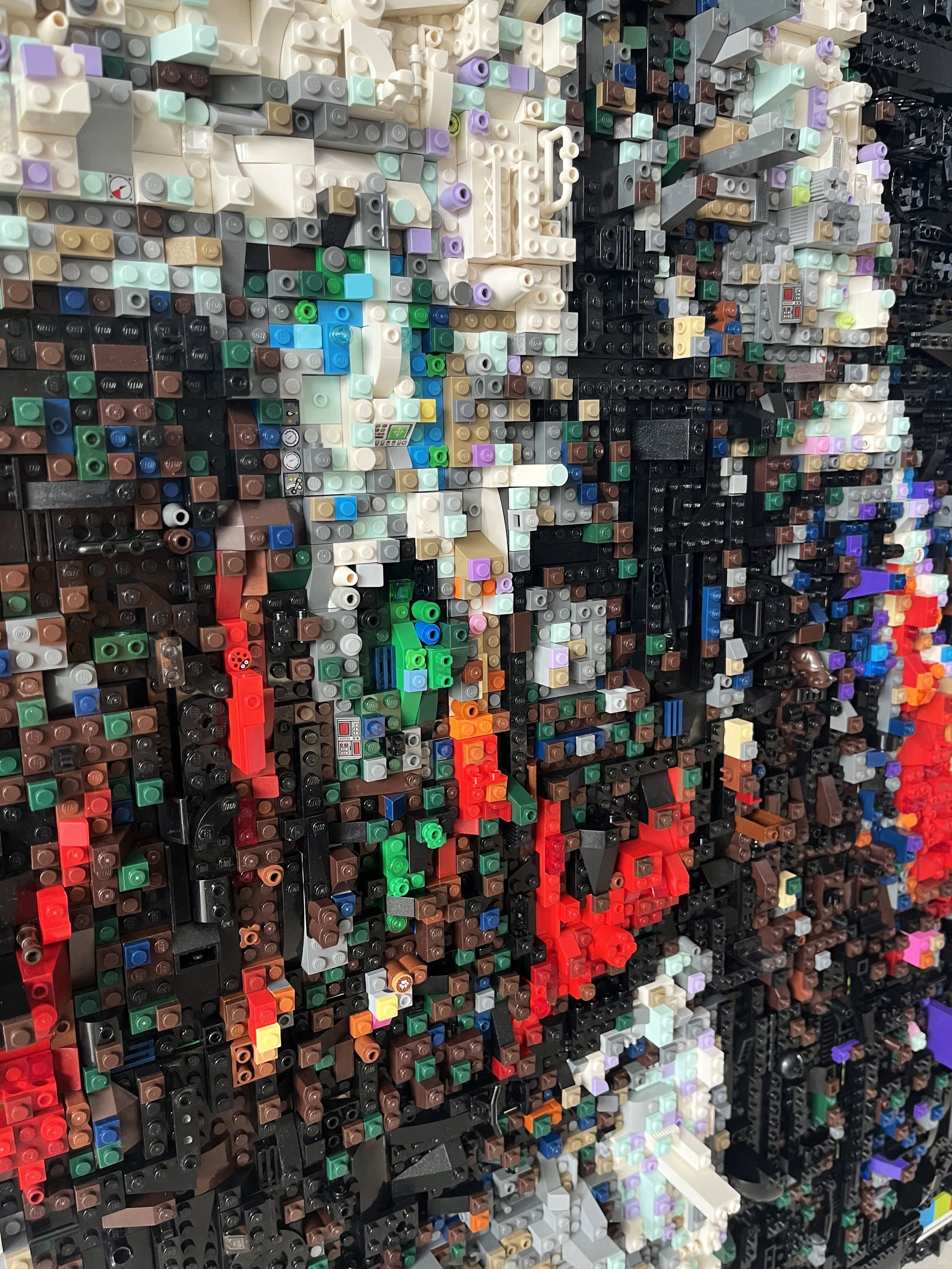 Apportez une touche d’originalité et de caractère à votre intérieur avec cette création contemporaine réalisée à partir de Lego recyclés. Montée sur un support aluminium et composite, elle allie robustesse et esthétique.
