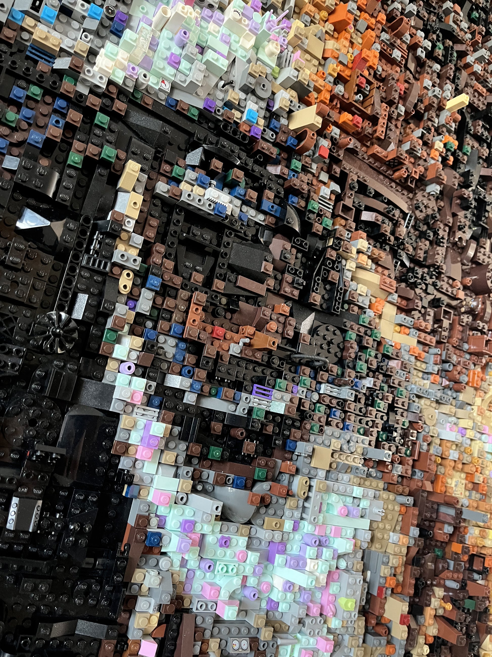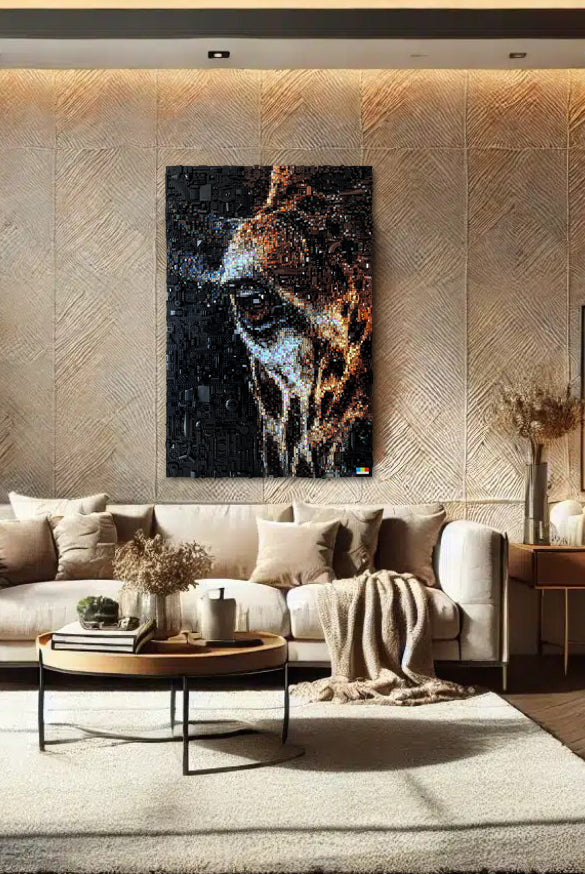 Apportez une touche d’originalité et de caractère à votre intérieur avec cette création contemporaine réalisée à partir de Lego recyclés. Montée sur un support aluminium et composite, elle allie robustesse et esthétique.