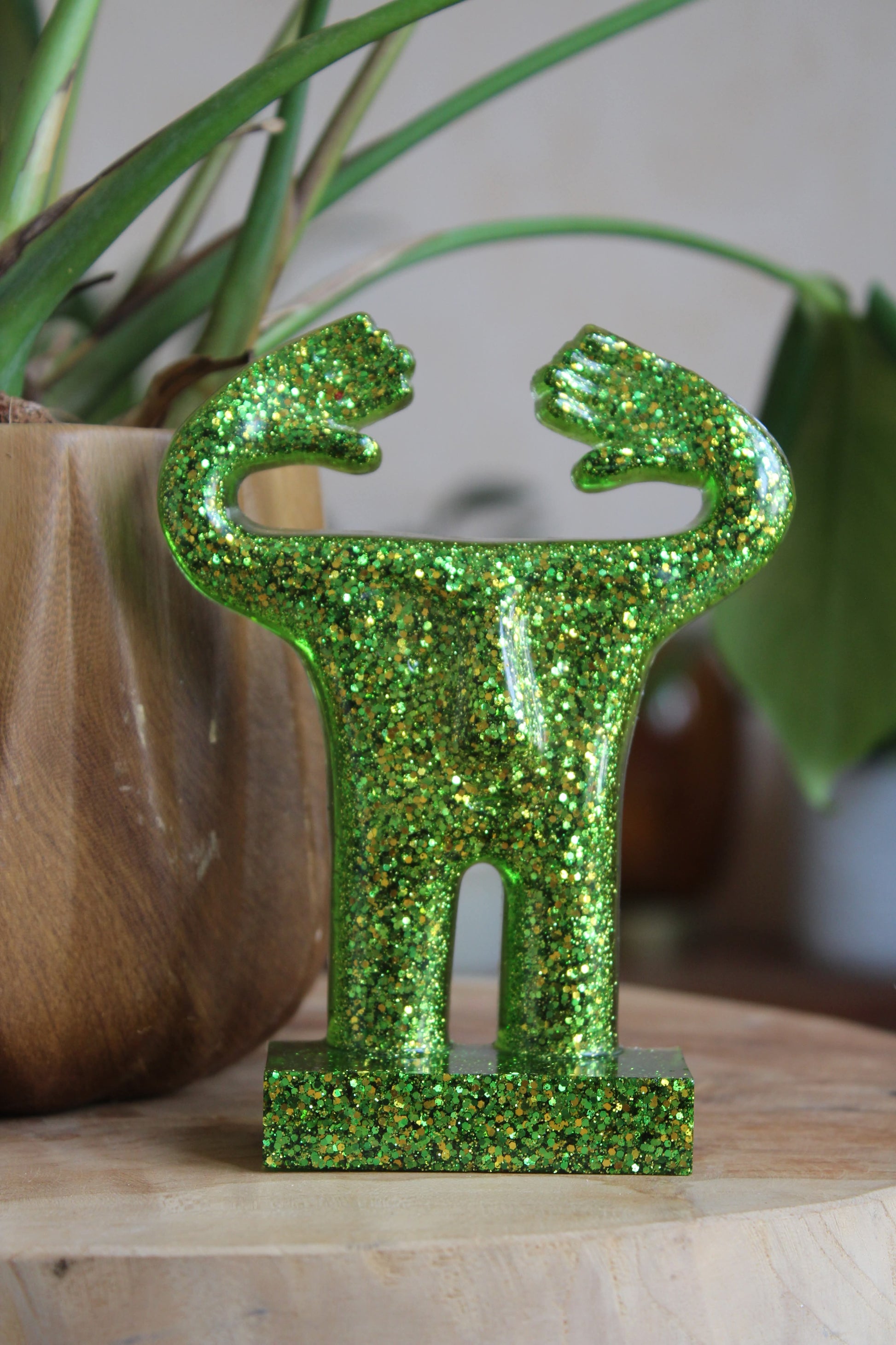 La statuette « Hautlesmains » est une création artisanale unique en résine, mesurant 13 cm de haut sur 10 cm de large.